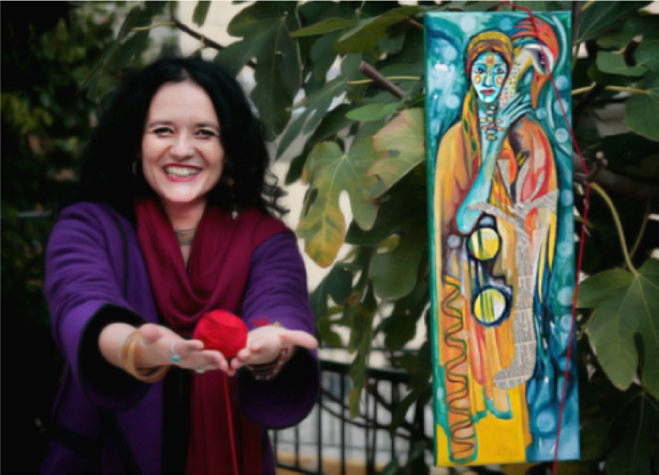 The Sleeping King cover art was created by Zoe Nikitaki, a visual artist, illustrator, storyteller, writer, and psychodynamic color practitioner & therapist. Zoe lives and creates in Athens, Greece. Her grandmother and all the women of her family were storytellers. She narrates stories from the written and oral tradition of Greece, as well as stories from other cultures, working in museums, schools, galleries, hospitals, on radio and television, and at festivals and conferences. Zoe loves fairy tales because she says they’re like birds – only children and the pure of heart can hear them.